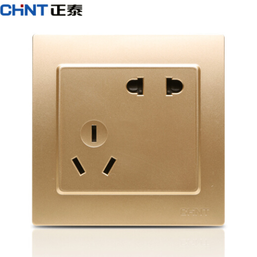 正泰(CHNT) 正泰 钢架墙壁开关插座 NEW7L香槟金色 墙面插座 五孔插座 斜五孔插座