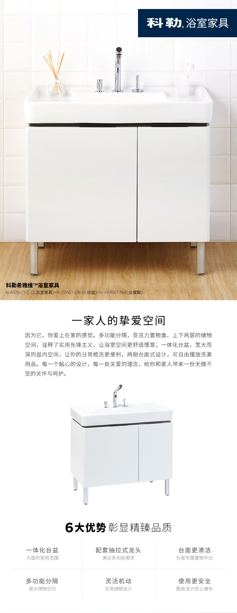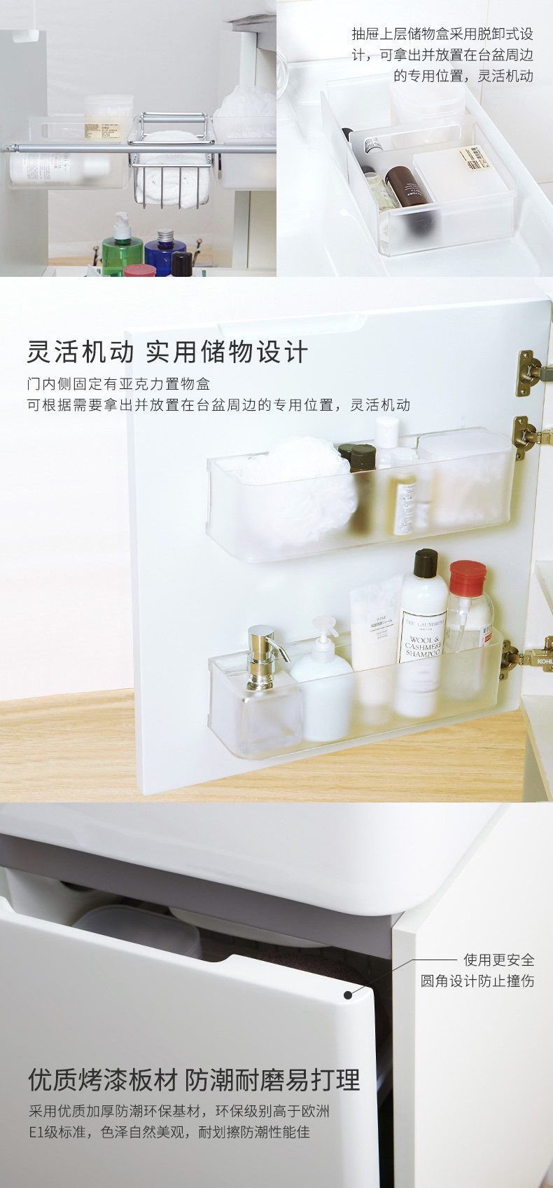 开放及封闭储物空间,储物方式更加灵活,常用梳洗物品如牙刷,梳子等可选择放于开放区域,便于日常取用